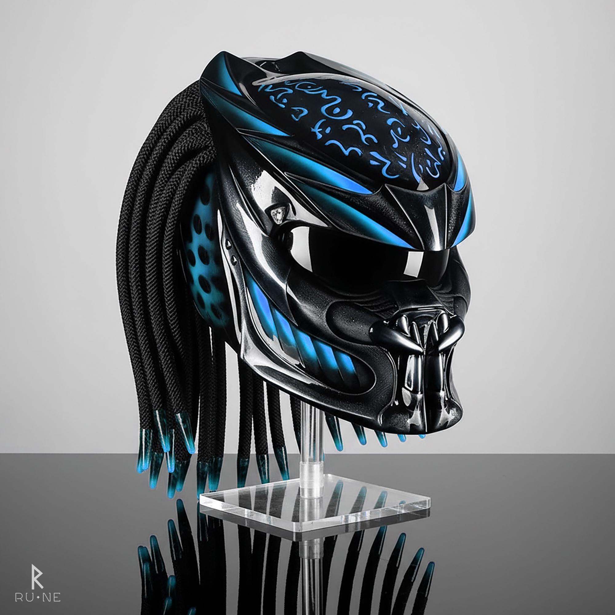 Runeofficial is all about handcrafted predator apex gear with a twist—think blue sci fi helmet design, tribal moto helmet touches, and pure self-expression. Whether you love a unique moto helmet or need a sky blue helmet for an alien helmet cosplay, we help you stand out, no matter where you ride.