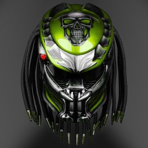 ✅ Unique mint green biker helmet with airbrush skull art and a fierce predator look
