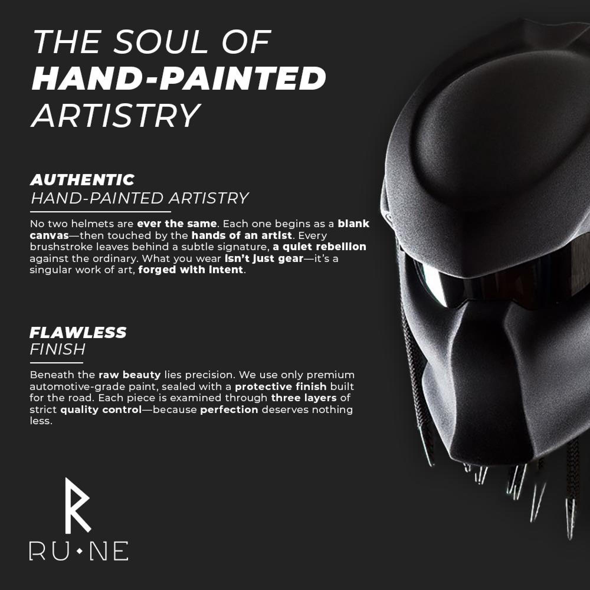Runeofficial is passionate about crafting rare riding pieces inspired by runes and rebellion. Every full face helmet, predator helmet, or alien helmet is a chance to wear your journey.