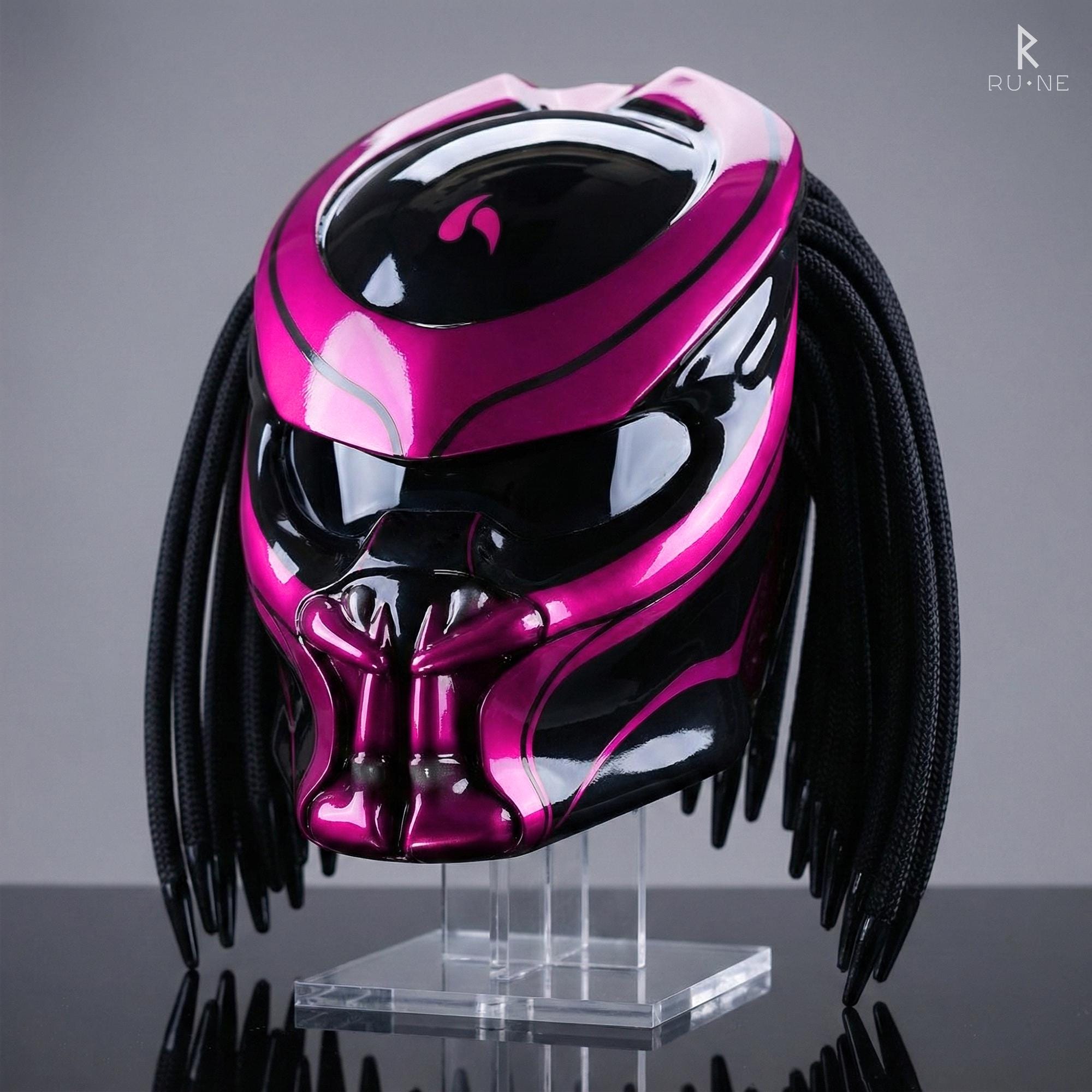 Motorcycle Helmet Predator Fang Pink Sapphire Sleek Custom LED DOT ECE