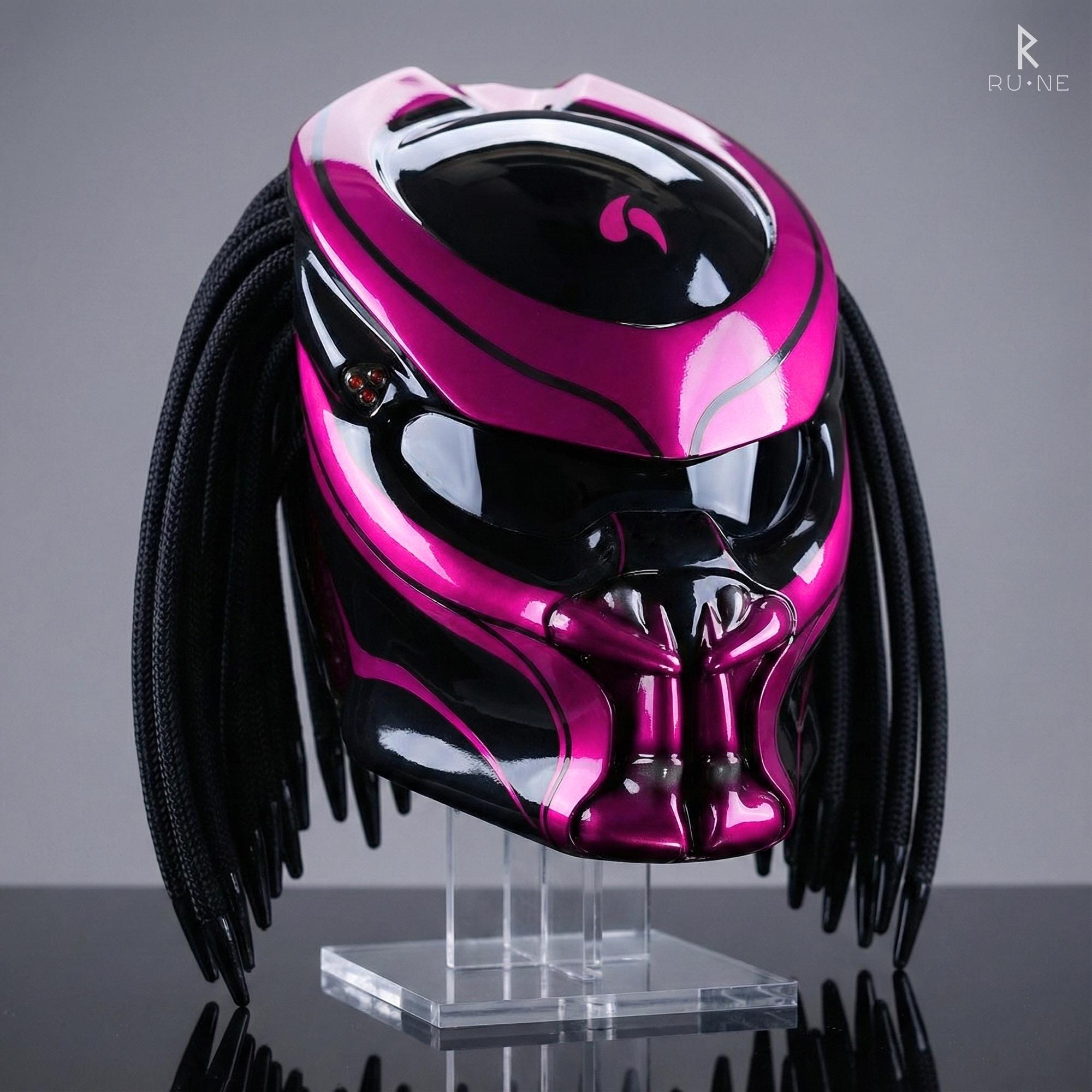 Why Choose Us? Our Predator Fang Helmet is a handcrafted statement pieceβ€”no mass-produced compromises. Since Etsy limits variation menus, please note that while this listing features pink sapphire, we offer a full spectrum of secondary colors (Red Candy, Chrome, Blue Navy) via direct message.