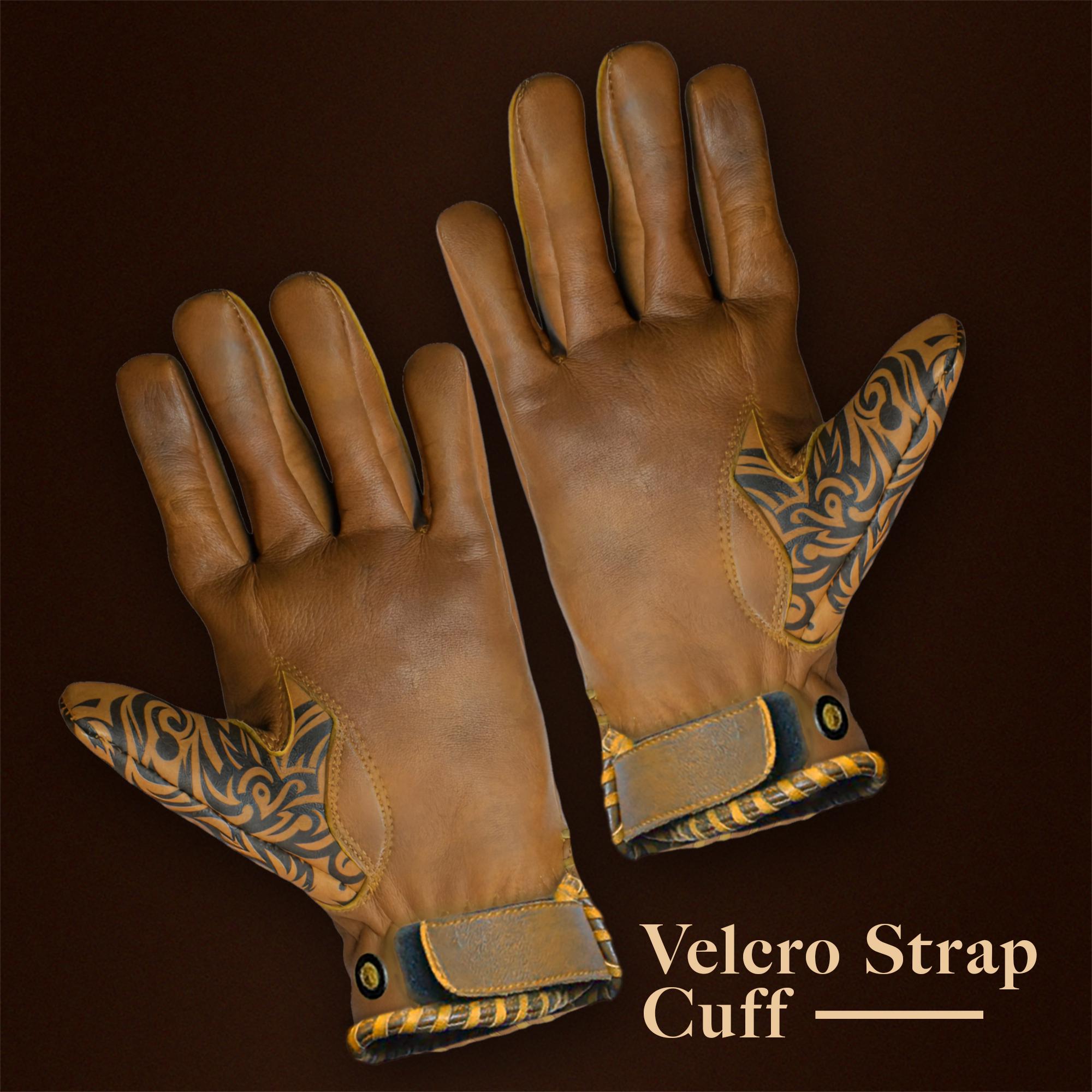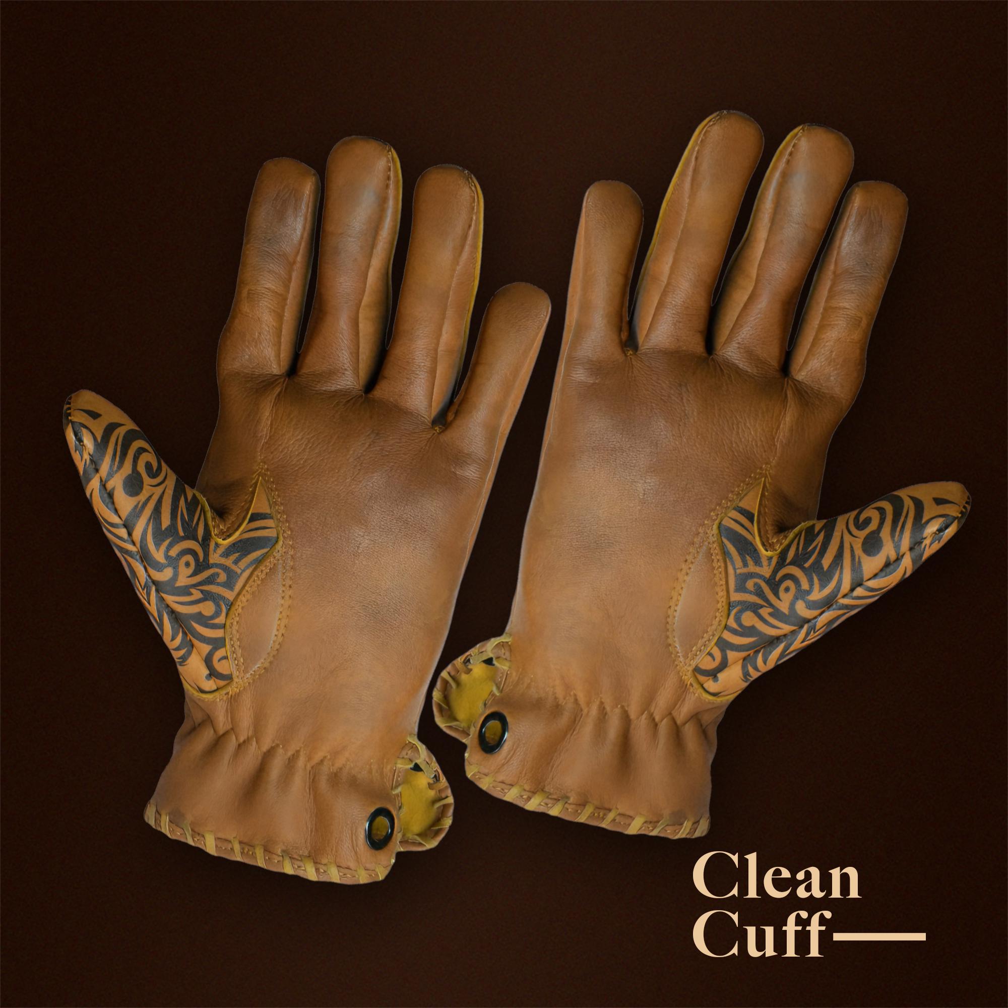 Embrace the warrior's spirit with these Biker Tattoo Gloves, featuring a powerful blend of tribal art and classic skull imagery. Handcrafted from supple lambskin, this design is for the rider who carries the soul of the tribe on every journey.