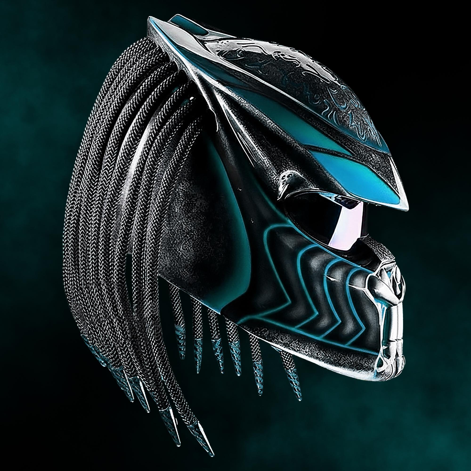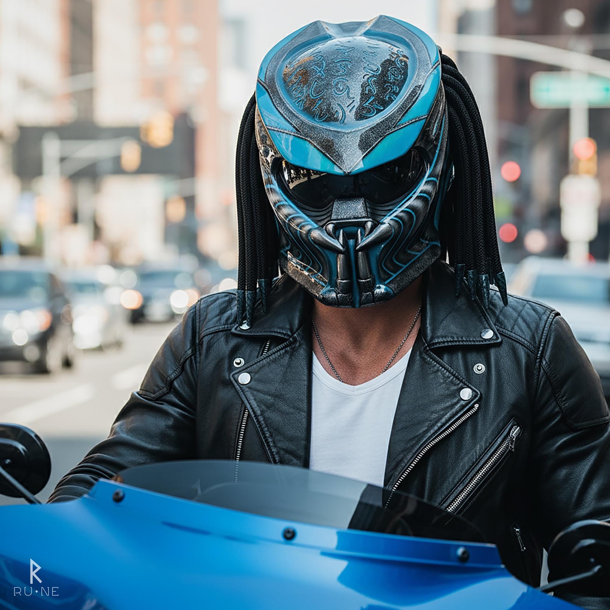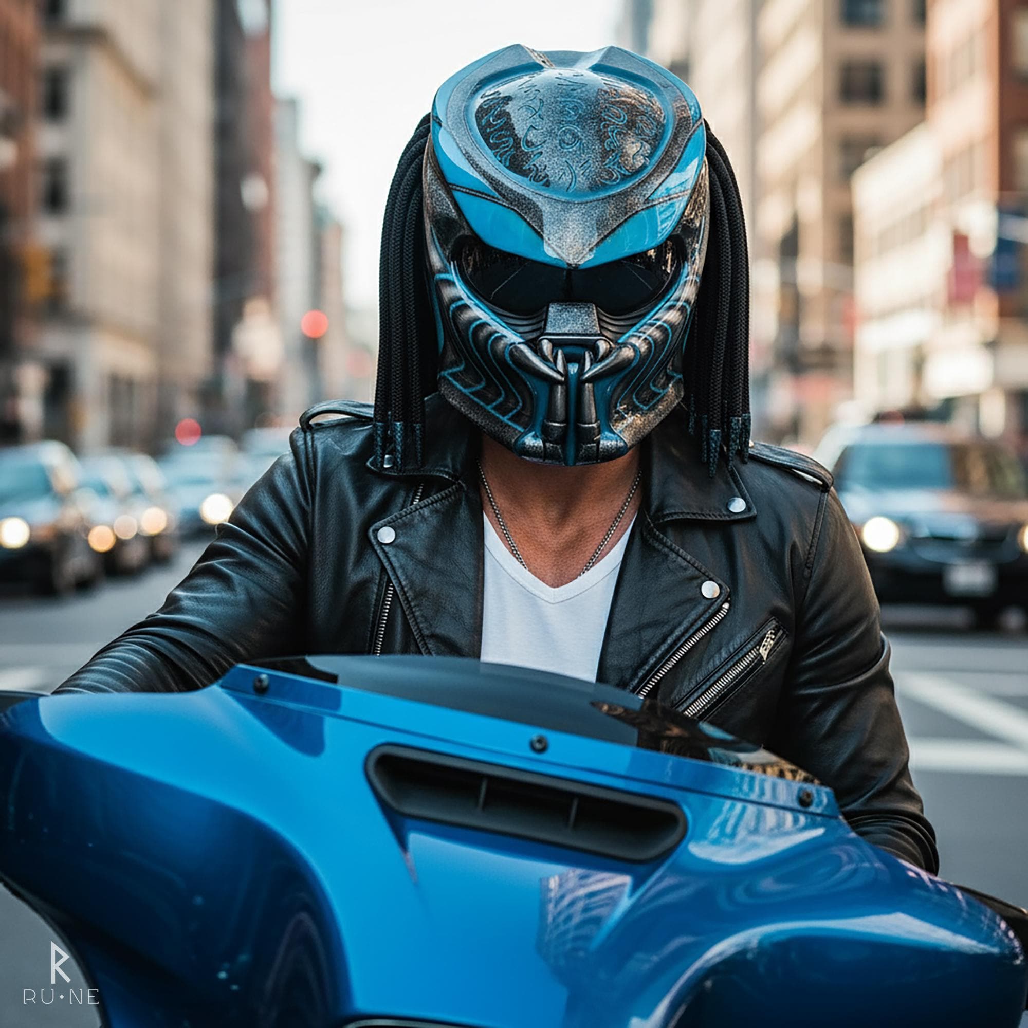 Ignite the asphalt with the Fiery Blue Sky Badlands Predator Motorcycle Helmet, a storm of Handmade Airbrush artistry designed for the boldest riders. The dynamic fusion of Blue Black shadows and Silver Gray textures captures the rugged essence of the Predator Badlands, making you look like an Apex Hunter stalking through a digital storm. Whether for a high-octane ride or as a stunning Cosplay Helmet Art piece, this helmet ensures all eyes are locked on you.