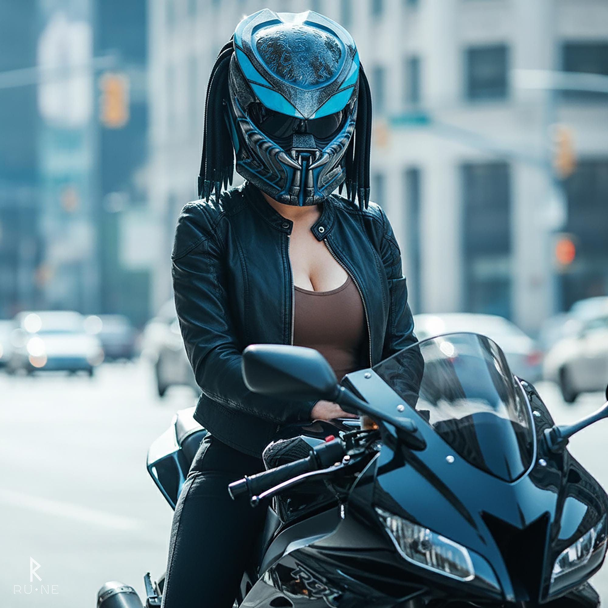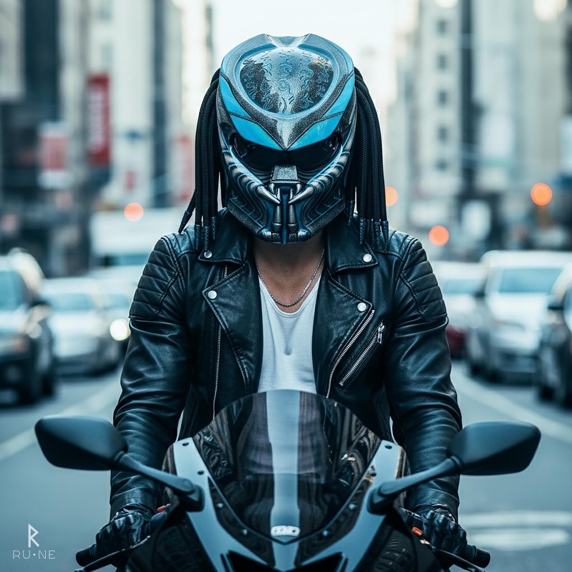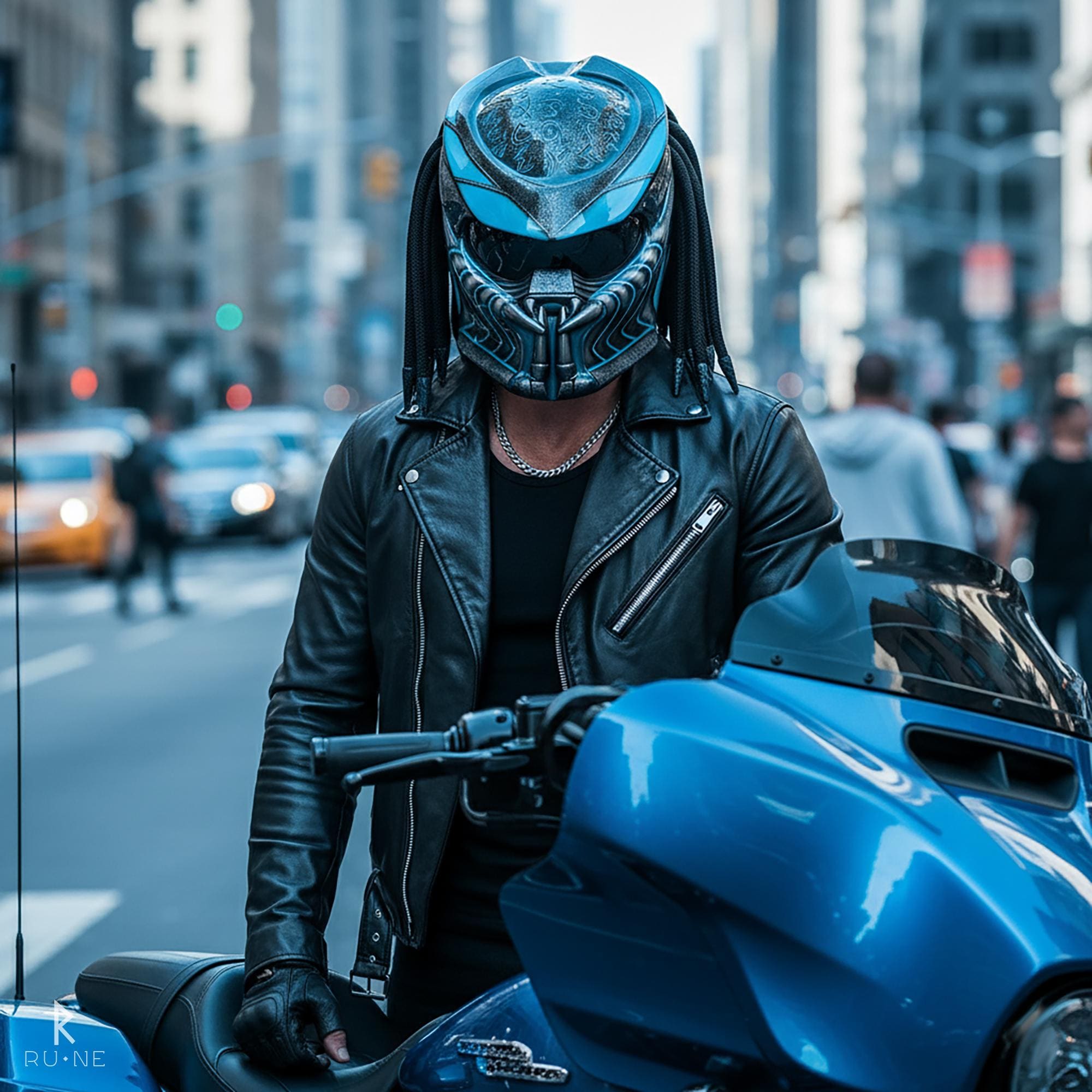 Ignite the asphalt with the Fiery Blue Sky Badlands Predator Motorcycle Helmet, a storm of Handmade Airbrush artistry designed for the boldest riders. The dynamic fusion of Blue Black shadows and Silver Gray textures captures the rugged essence of the Predator Badlands, making you look like an Apex Hunter stalking through a digital storm. Whether for a high-octane ride or as a stunning Cosplay Helmet Art piece, this helmet ensures all eyes are locked on you.