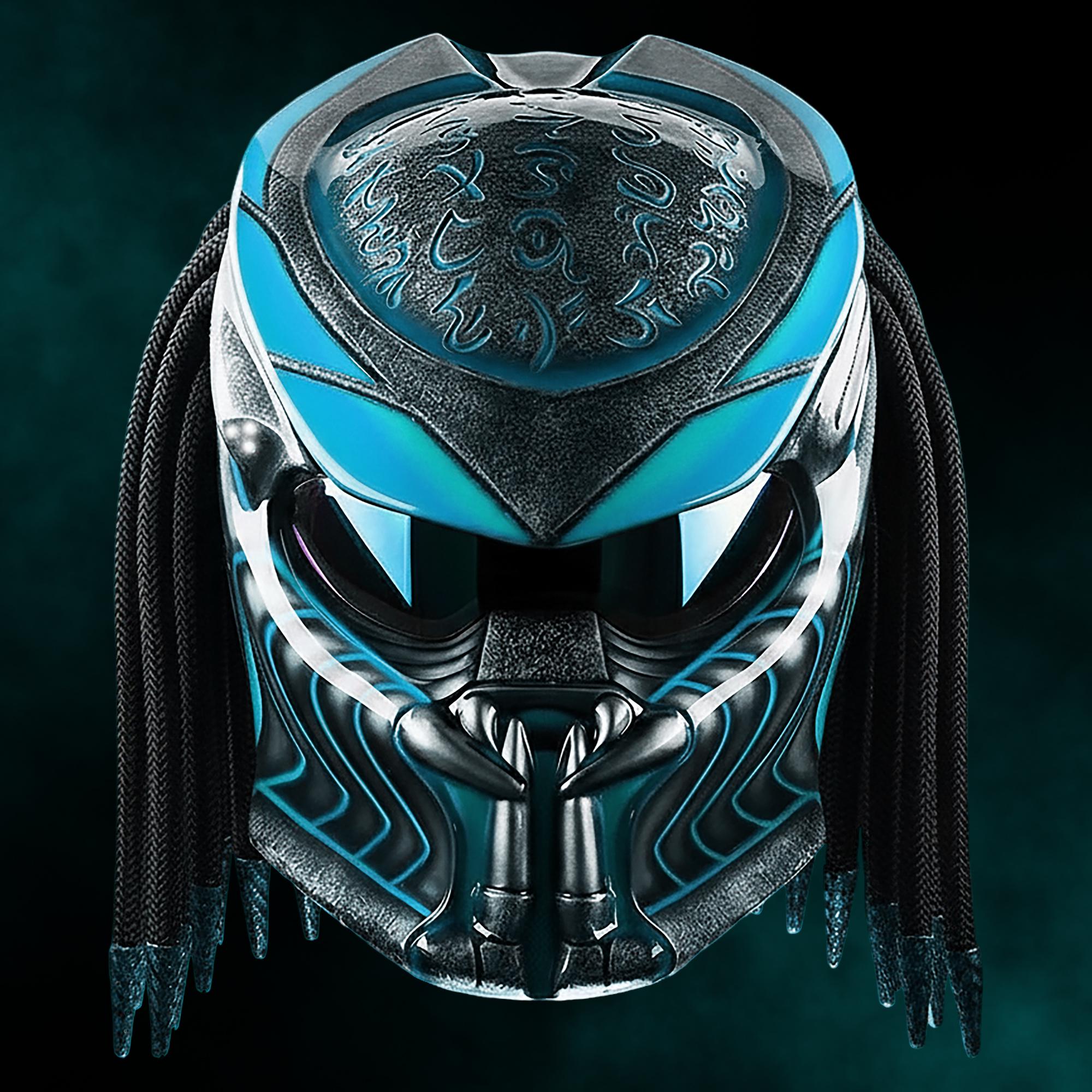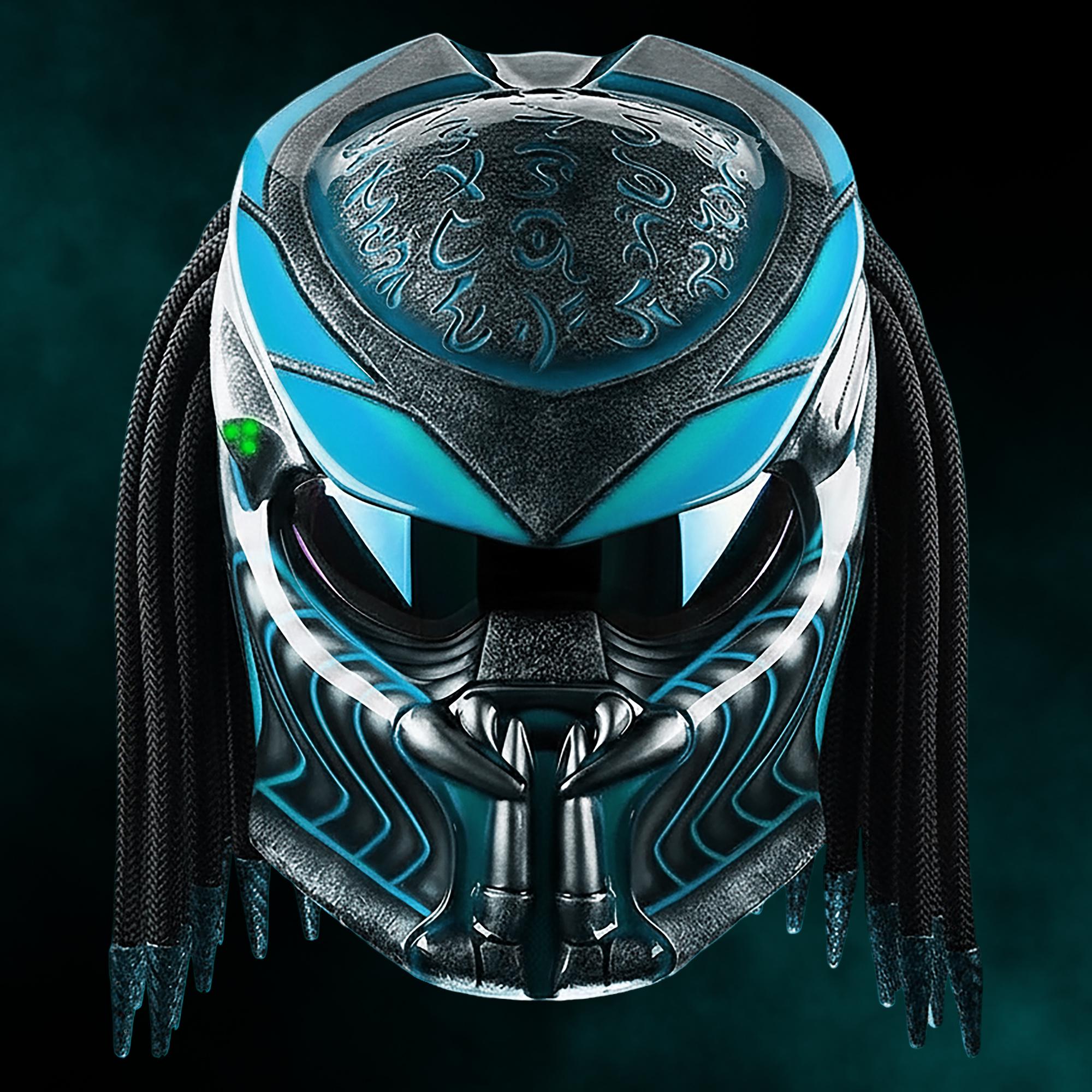 Authentic Custom Predator Helmet features a unique hand painted color scheme.